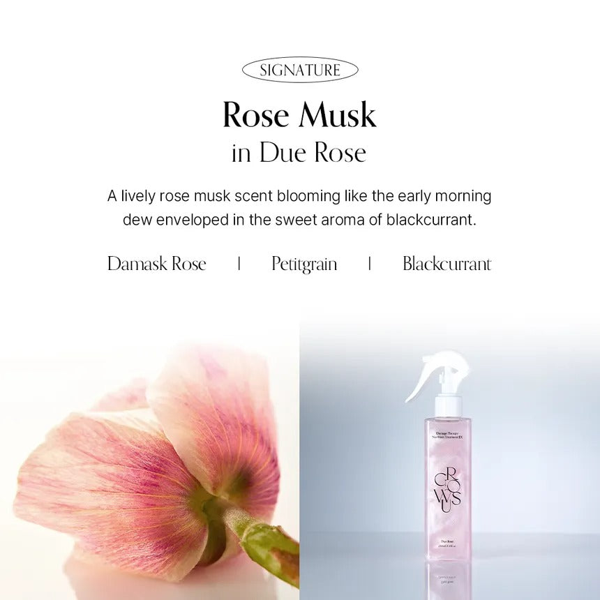 - Due Rose: A lively rose musk scent with notes of damask rose, petitgrain, and blackcurrant.