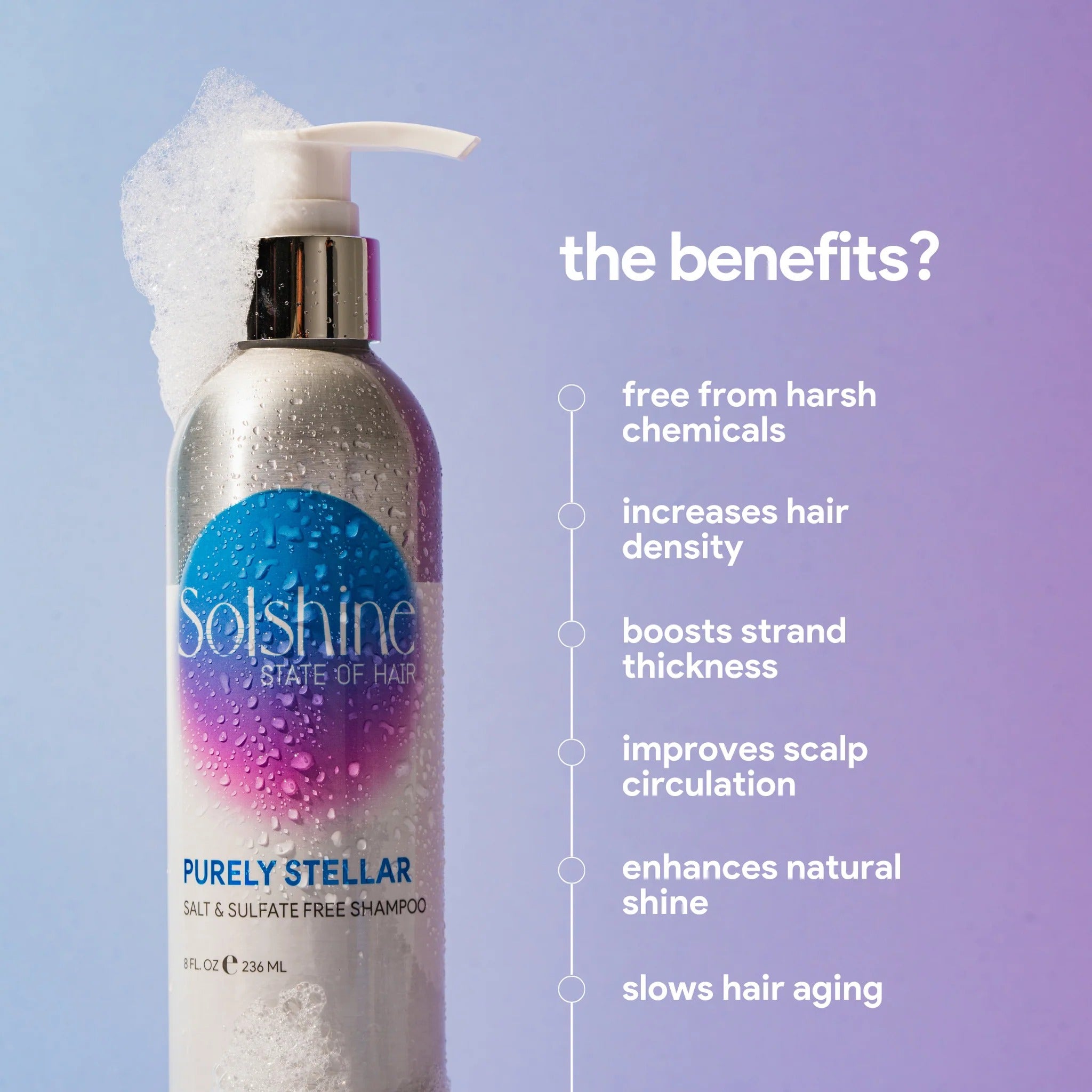 This gentle formula is free of the usual hair villains, sodium chloride, sulfates and harsh chemicals but packed with scalp-loving ingredients that boost circulation and strengthen your strands. Daily use helps slow down hair’s aging process.